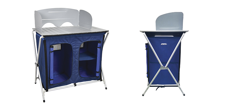 Top in alluminio, paravento incluso, rete posteriore per ventilazione, doppia apertura frontale. Borsa per il trasporto inclusa.