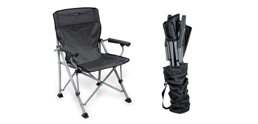 Poltrona sedia OPAL pieghevole con braccioli. Pratica e con ingombro minimo.